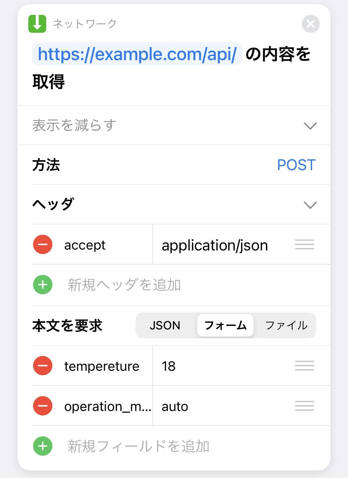 curl -X POST "https://example.com/api/" -H "accept: application/json" -d "temperature=18" -d "operation_mode=auto"