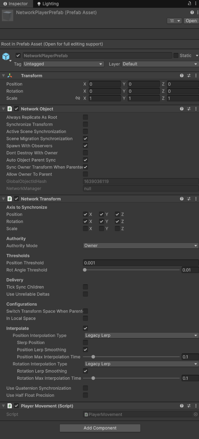 NetworkTransformClientコンポーネントの作成は不要になりました -